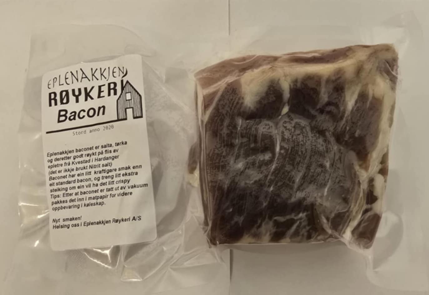 Eplenakkjen Røykeri Bacon kjem ifrå Stord, testet, modnest og røykt Bacon.